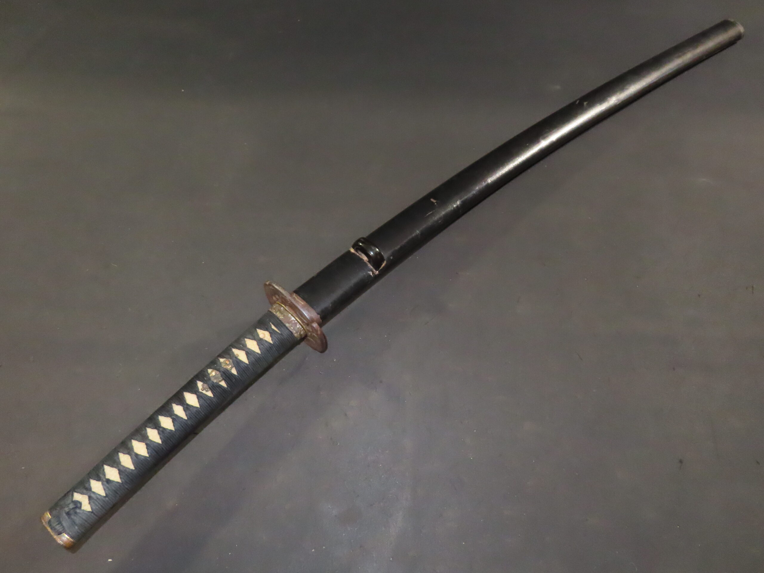 白鞘・拵の傷み、テープ貼付後等がございます。ご了承の上、入札下さい)