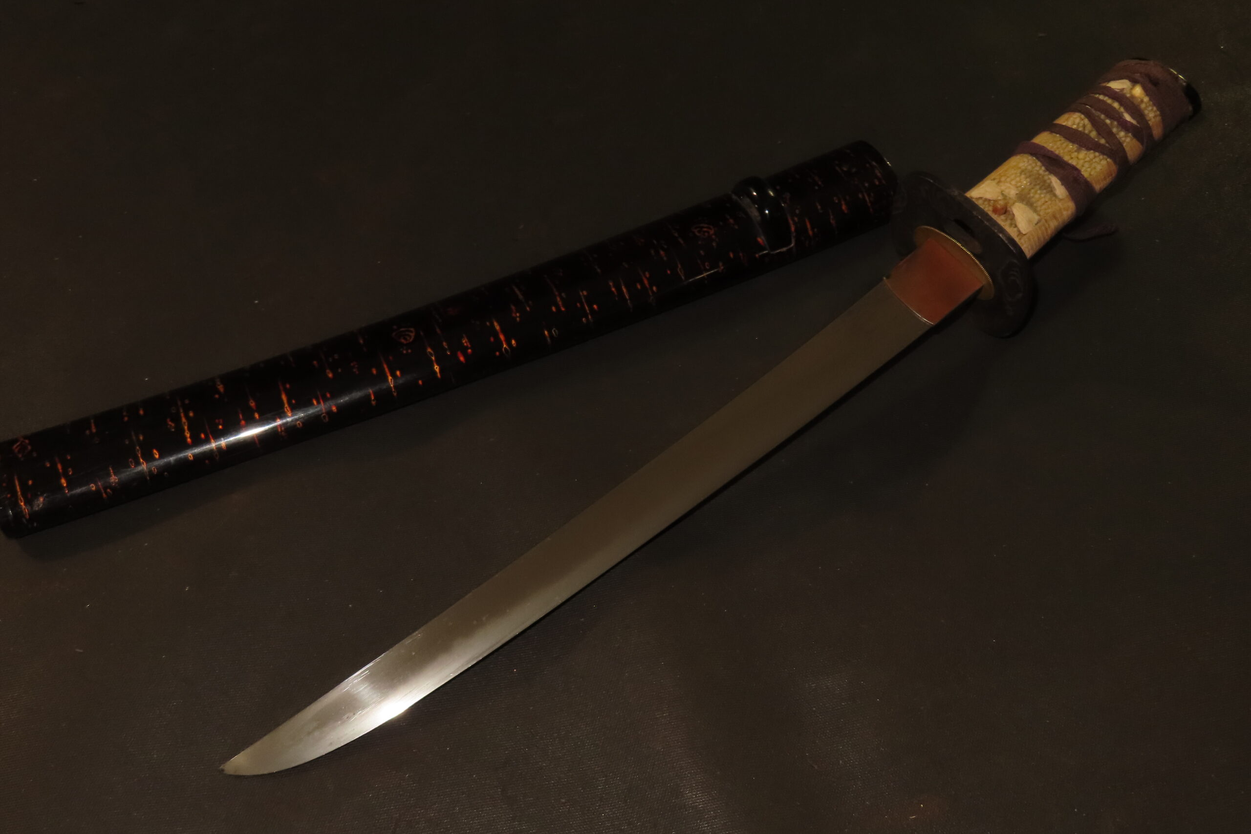白鞘・拵の傷み、テープ貼付後等がございます。ご了承の上、入札下さい)