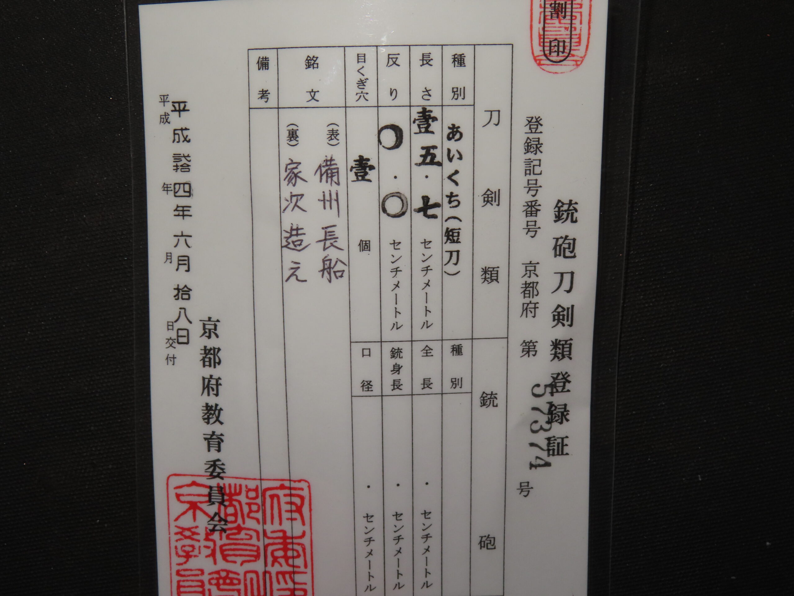 銘:備州長船 家次造之