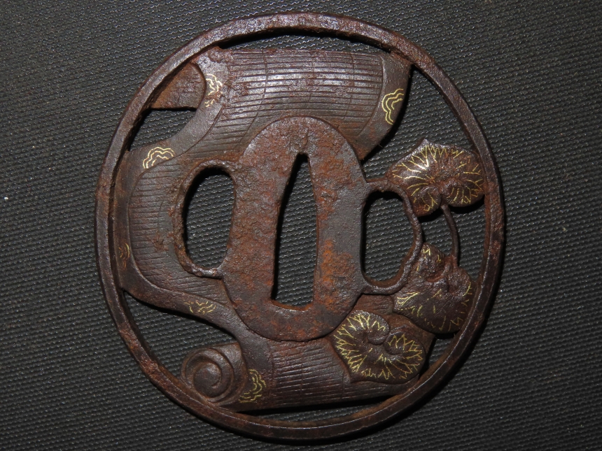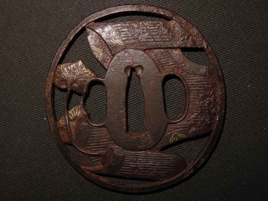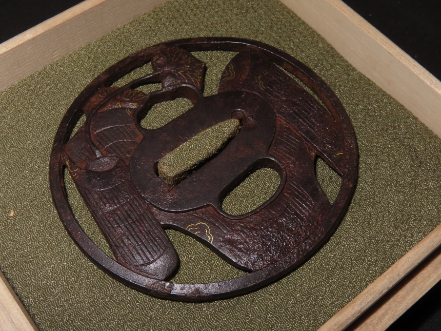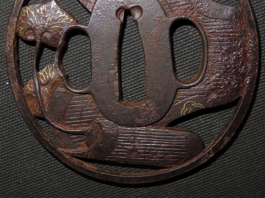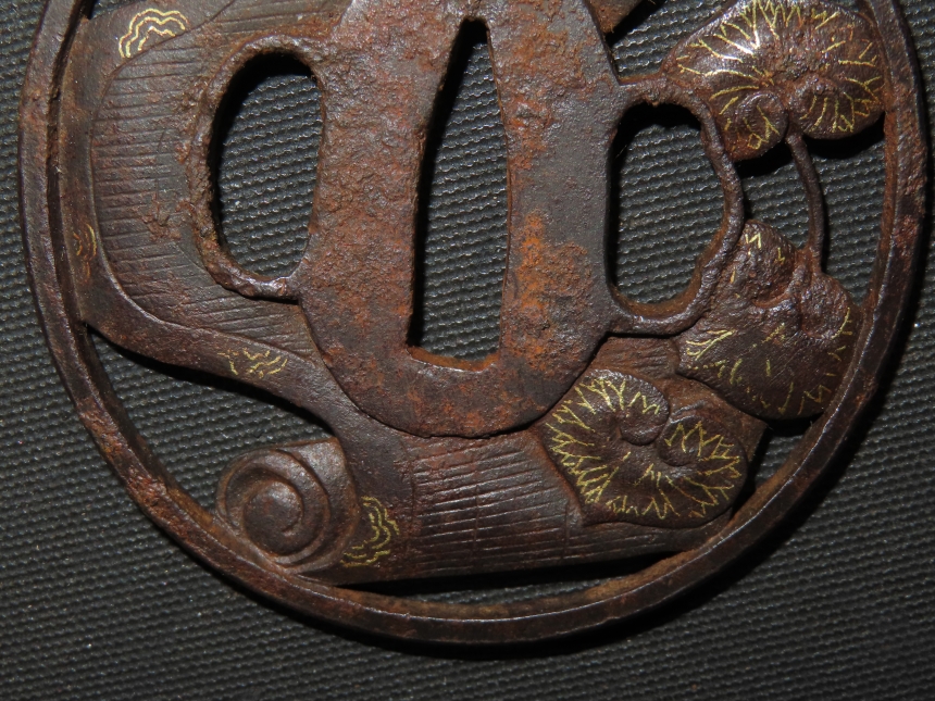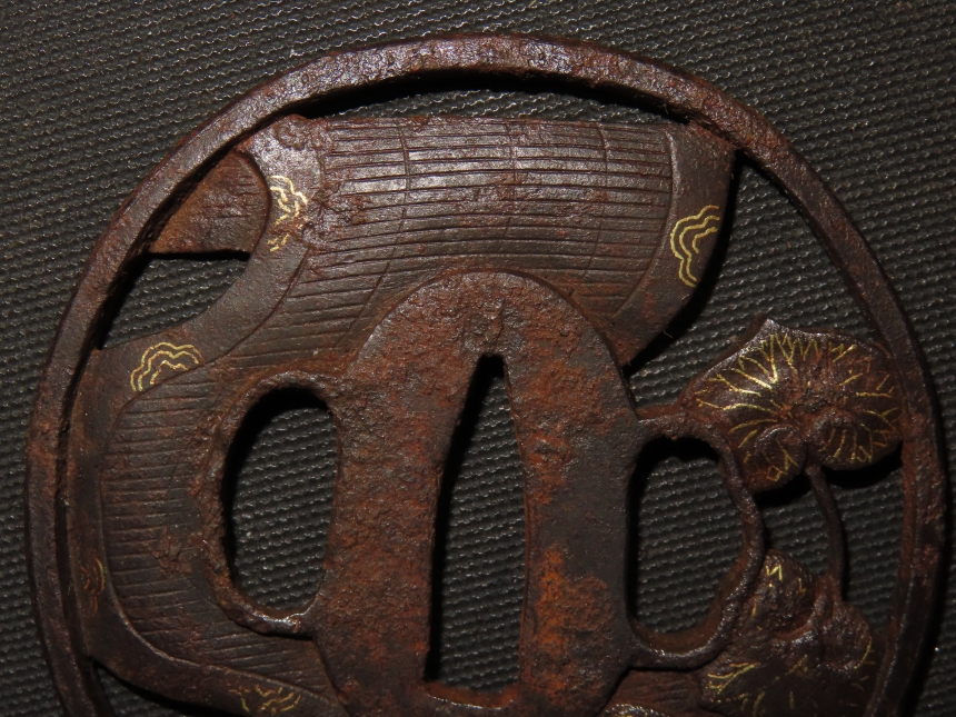材質: 鉄、毛彫、金象嵌