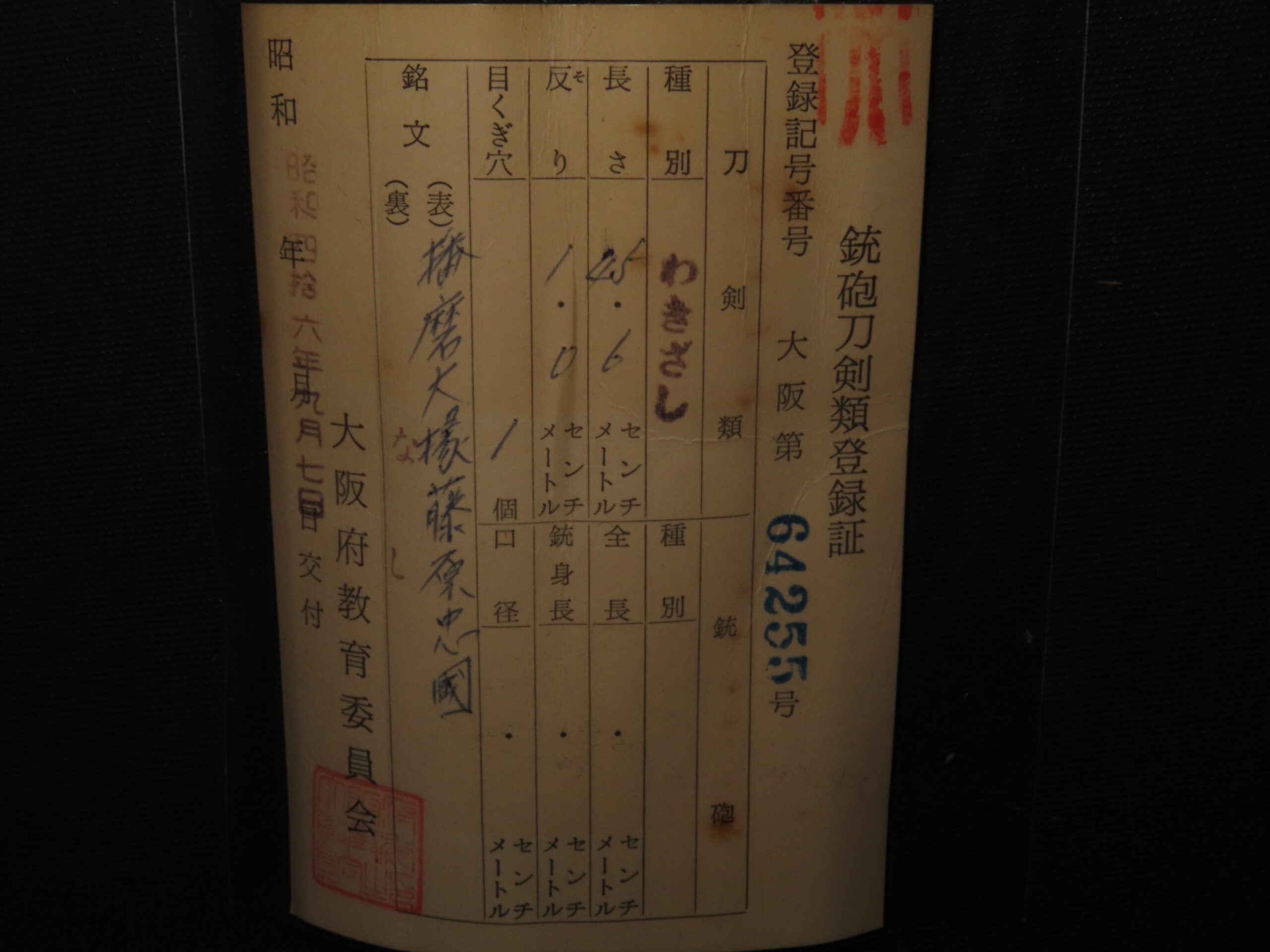 ※落札者様は銃砲刀剣類所持等取締法にもとづき
