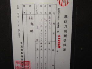 銘:無銘 茎時代:江戸 付属品:白鞘 (スタンドは別です) 状態:錆、傷ございます ※落札者様は銃砲刀剣類所持等取締法にもとづき ~注意事項~ ●正式鑑定は行っておりませんので真贋は分かり兼ねます。 ●サイズなどは多少の誤差があるかと思いますのでご了承お願い致します。 ●基本的には返品は受け付けませんが当方による記載間違え等の返品・返金は対応致します。 ●消費税は価格に含まれております。 ●以上の事を同意の上、ご購入下さい。 |