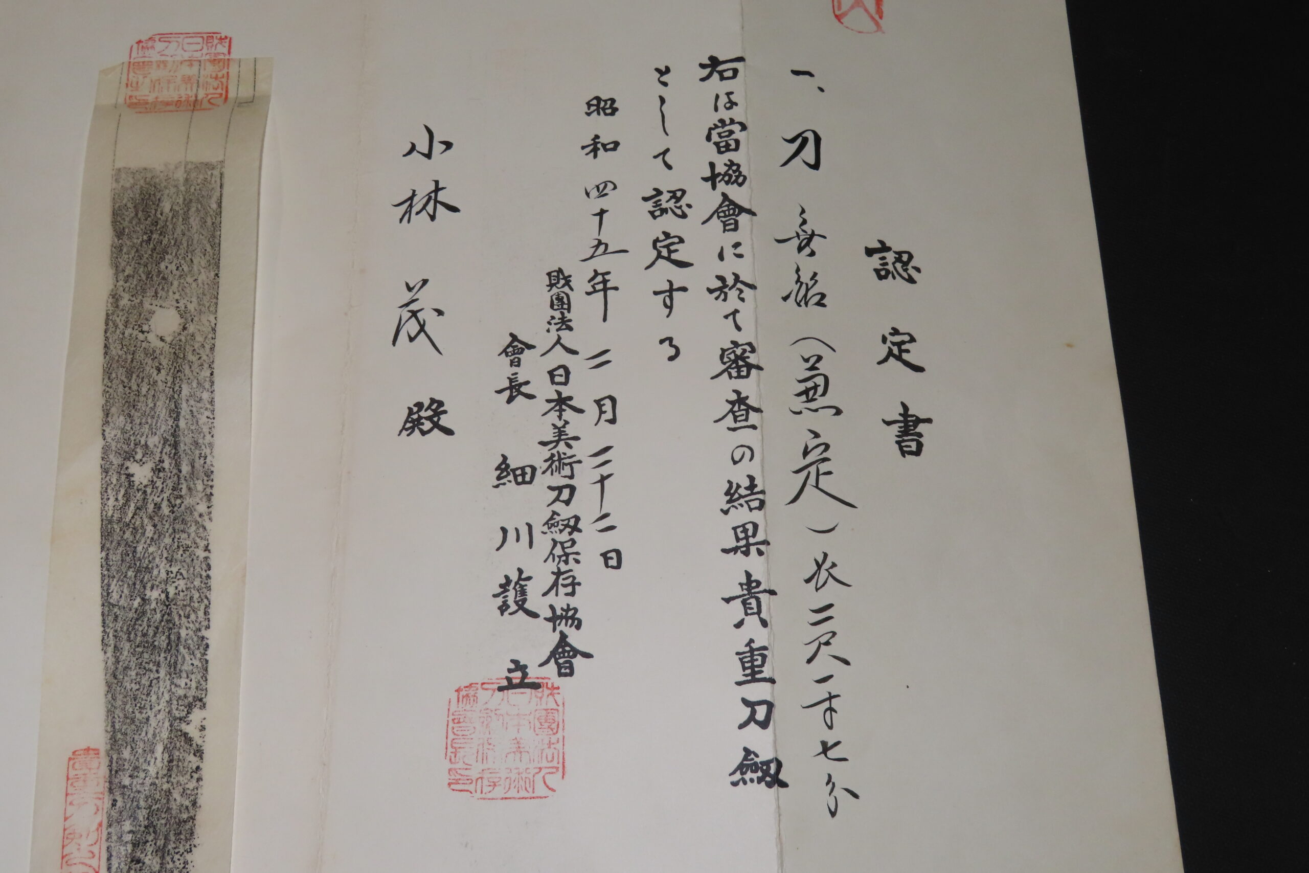 付属品:貴重認定書 白鞘 (スタンドは別です)